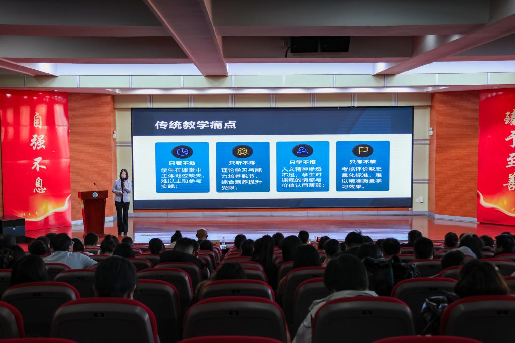 学校领导为黑龙江省第五届教师教学创新大赛获奖教师、首届全国高校教师数智教育创新大赛获奖教师及第三批国家级一流课程建设负责人颁奖,表彰教师们在课程建设中与课堂教学创新中的突出贡献。随后,机电工程学院教师杨瑞带来课程思政微课展示《角动量定理及角动量守恒定律》,在专业理论教学中融入科学精神与家国情怀,展现教学创新魅力。文学院教师任金凤分享了国家级一流课程《中国话剧研究与实践》的建设心得,介绍其深耕课程建设十五年的教学探索与创新模式,为全校课程建设提供了可复制、可推广范本。