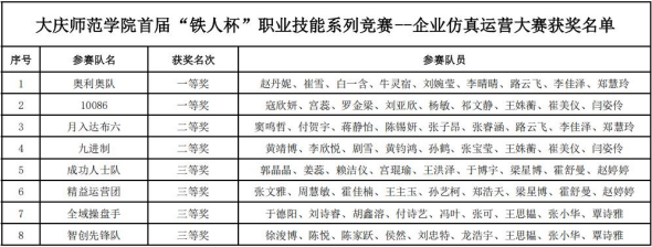 以赛促学强技能,以赛促练育人才。近日,由教务处主办、经济管理学院承办的大庆师范学院首届“铁人杯”本科生职业技能系列大赛--企业仿真运营大赛圆满落幕。本次大赛以提升学生企业运营实践能力为核心,吸引了全校多个学院学生积极参与,历经初赛与决赛两轮激烈比拼,最终决出优胜队伍。