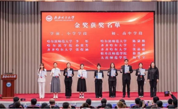 近日,2025年黑龙江省高校师范类专业学生教师技能大赛在齐齐哈尔大学圆满落幕。本次大赛由黑龙江省教育厅高教处、高校创新创业教育指导委员会主办,齐齐哈尔大学教师教育学院承办,旨在搭建“以赛促学、以赛促教、以赛促研”的交流平台,全面检验全省高校师范类专业学生的教学核心素养,为龙江基础教育培育优质后备力量。我校对此高度重视,由教务处长张国发带队参赛,6名参赛选手均从校内“行知杯”师范生教学技能系列竞赛的获奖选手中择优遴选产生。