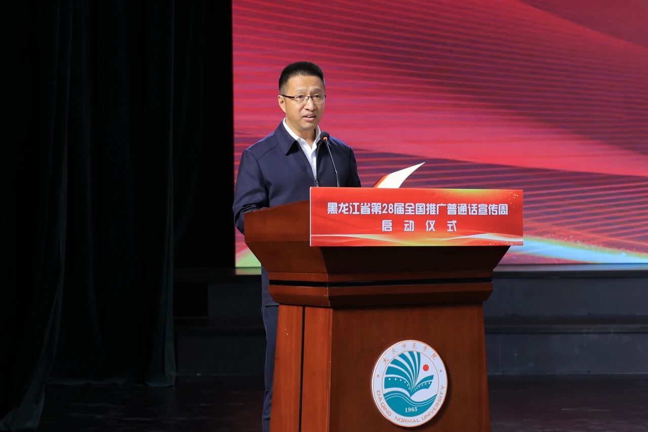 2025年9月15日,以“加大国家通用语言文字推广力度,促进铸牢中华民族共同体意识”为主题的黑龙江省第28届全国推广普通话宣传周启动仪式在大庆师范学院举行。启动仪式由黑龙江省教育厅主办,大庆师范学院、大庆市教育局承办。黑龙江省教育厅副厅长董成出席仪式并讲话,大庆市人民政府副秘书长刘燕、大庆师范学院院长、党委副书记张平分别致辞,大庆市教育局局长高树才出席仪式。启动仪式由大庆师范学院副院长周丹主持。